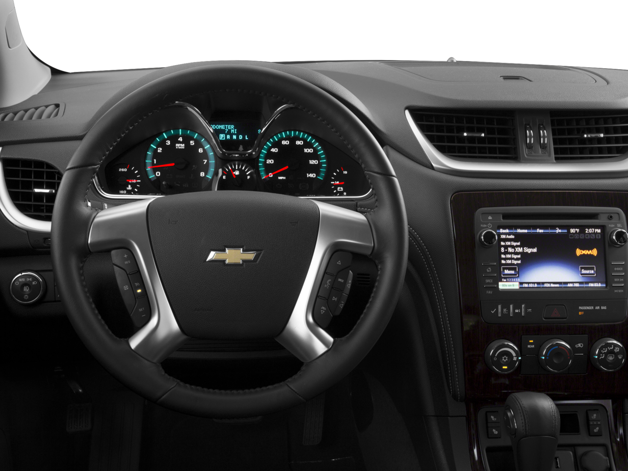 See what's behind you with the back up camera on the Chevrolet Traverse. This Chevrolet Traverse features a hands-free Bluetooth® phone system. Never get into a cold vehicle again with the remote start feature on this unit. This unit is equipped with the latest generation of XM/Sirius Radio. The state of the art park assist system will guide you easily into any spot. This unit has a V6, 3.6L high output engine. This vehicle is equipped with all wheel drive. This unit embodies class and sophistication with its refined white exterior. Set the temperature exactly where you are most comfortable in this 1/2 ton suv. The fan speed and temperature will automatically adjust to maintain your preferred zone climate. This Chevrolet Traverse is outfitted with an OnStar communication system. Expand the cargo capabilities of this vehicle by using the installed roof rack. The Electronic Stability Control will keep you on your intended path.
