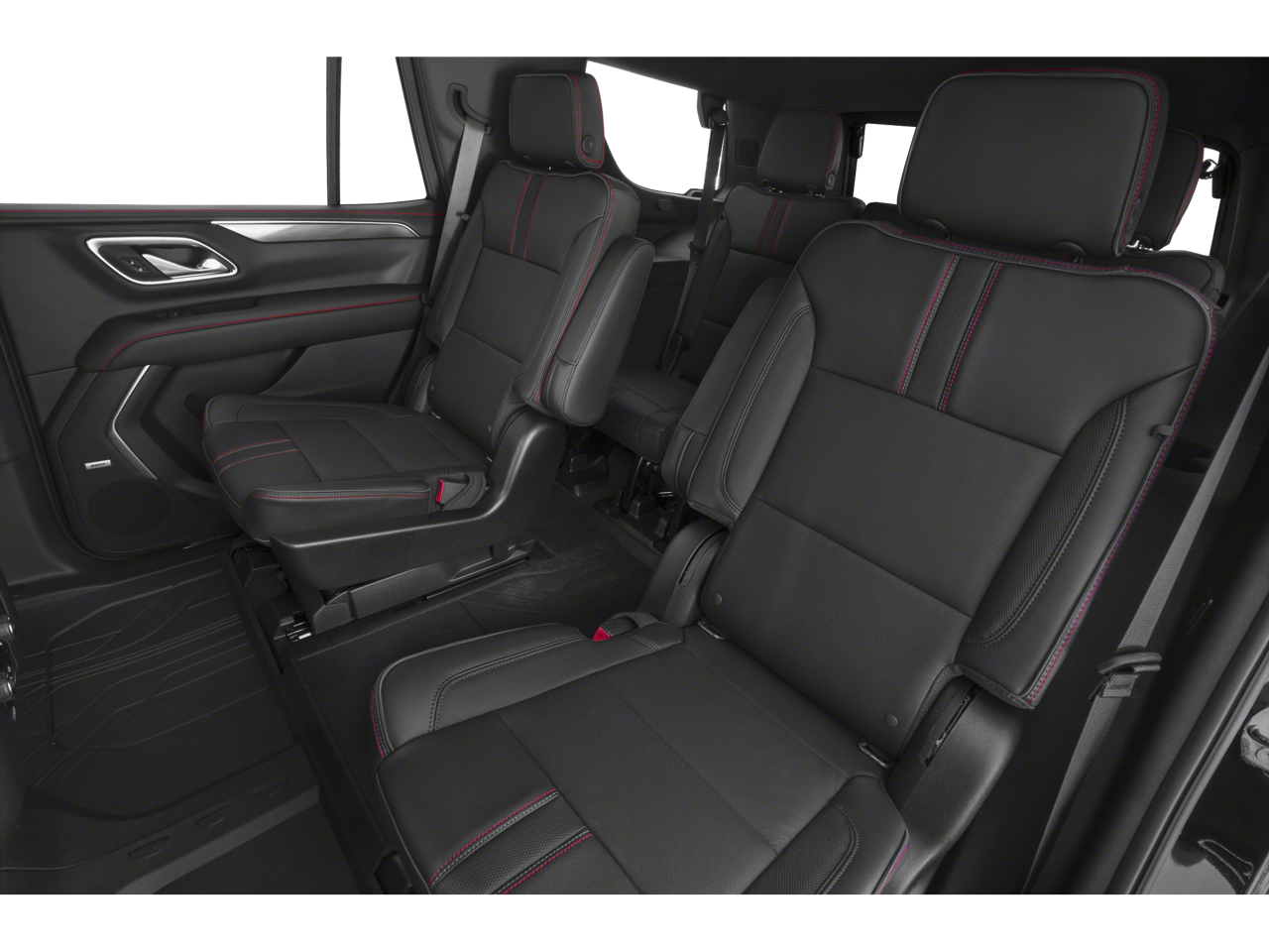 - Preferred Equipment Group 1SP: Bright Front and Rear Door Sill Plates; Perforated Leather Seat Trim; Remote Start; 3.23 Rear Axle Ratio; Floor Console with Storage Area; LED Daytime Running Lamps; Driver and Front Outboard Passenger Airbags; Memory Settings For Driver; Premium Smooth Ride Suspension; Front High-Back Reclining Bucket Seats; Electronic 10-Speed Automatic Transmission with Overdrive; Universal Home Remote; Colour-Keyed Carpeting Floor Covering; Hands-Free Rear Power Programmable Liftgate; 1st and 2nd Row Colour-Keyed Carpeted Floor Mats; Chevrolet Infotainment 3 Plus System Radio; HD Radio; SiriusXM Radio with 360L; Leather-Wrapped Steering Wheel; 22" X 9" Bright Machined Wheels; Infotainment Display; Auto-Dimming Inside Rearview Mirror; 275/50R22SL AS BW Tires; 2 USB Data Ports